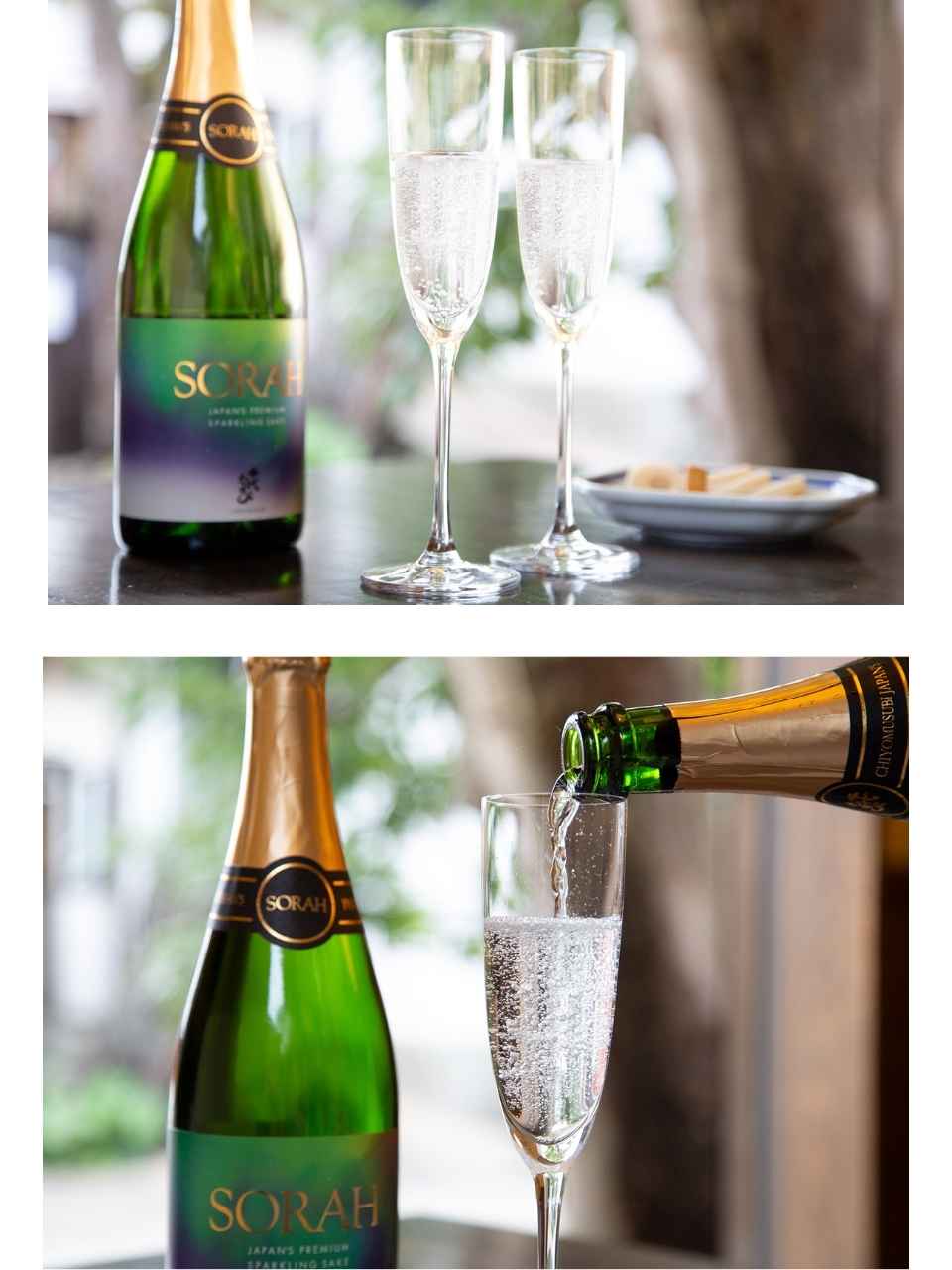 Le saké pétillant Chiyomusubi SORAH est un authentique saké pétillant (awa-saké) réalisé par double fermentation en bouteille.
